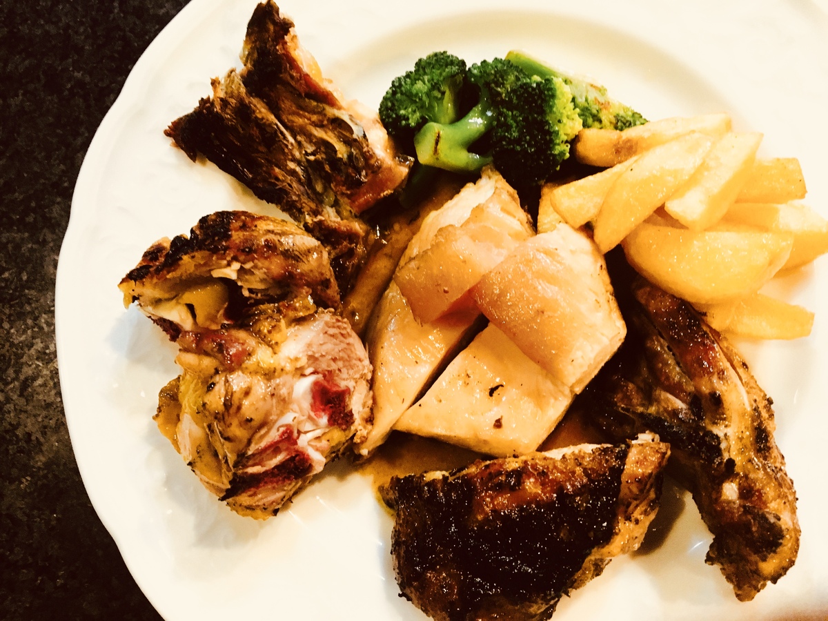 オーブンで8割程焼きますが、仕上げをこのように皮に炎が届くか届かないかくらいでチリチリさせてやると、そりゃもうタマラン仕上がりになります。